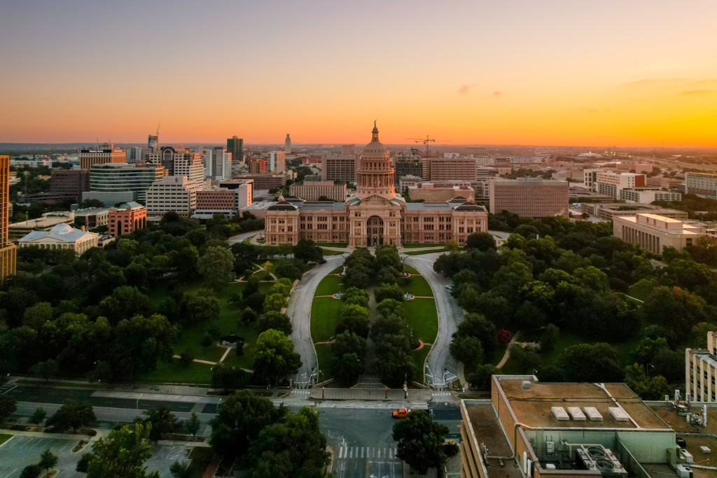 - Arsitektur megah dengan kubah berlapis emas yang menjadi ikon kota Austin.