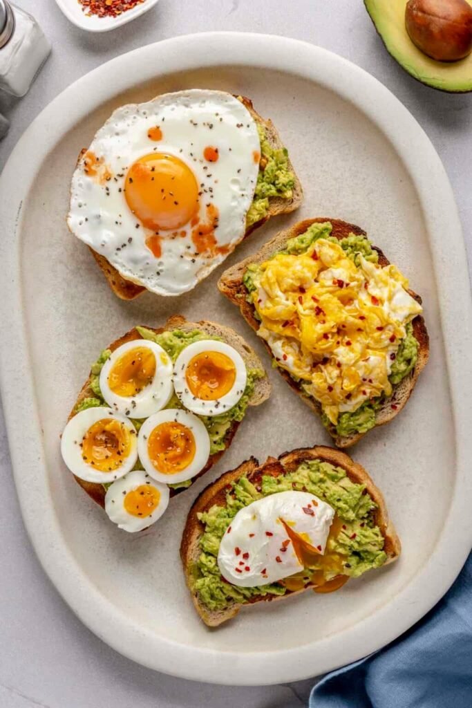Source: https://feelgoodfoodie.net/recipe/avocado-toast-with-egg-3-ways/