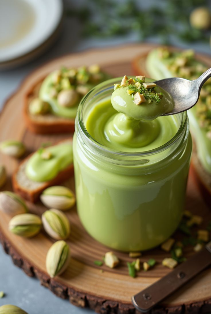 - Mentega pistachio (pistachio butter) – mirip selai kacang, tapi dari pistachio.