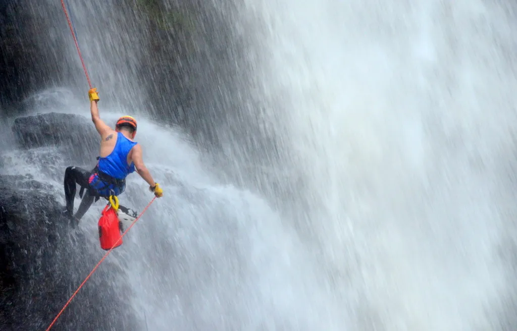 3. Melompat: Terkadang dalam canyoneering, ada bagian di mana kamu harus melompat dari tebing ke kolam atau sungai di bawahnya, tentunya dengan pertimbangan kedalaman air dan keamanan.