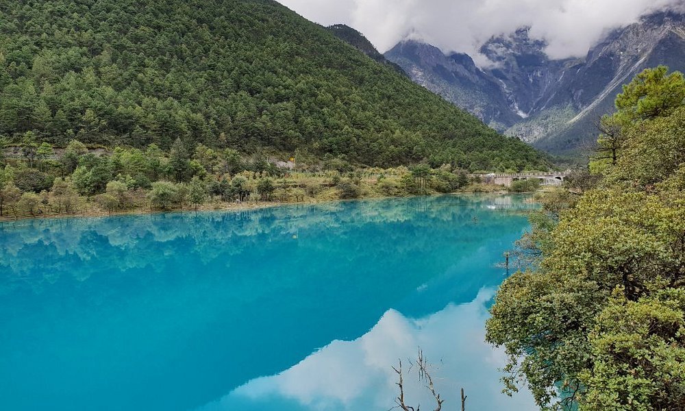 Terletak di kaki Gunung Salju Naga Giok (Jade Dragon Snow Mountain), Lembah Blue Moon menawarkan pemandangan sungai berundak dengan air berwarna biru toska yang sangat pekat.