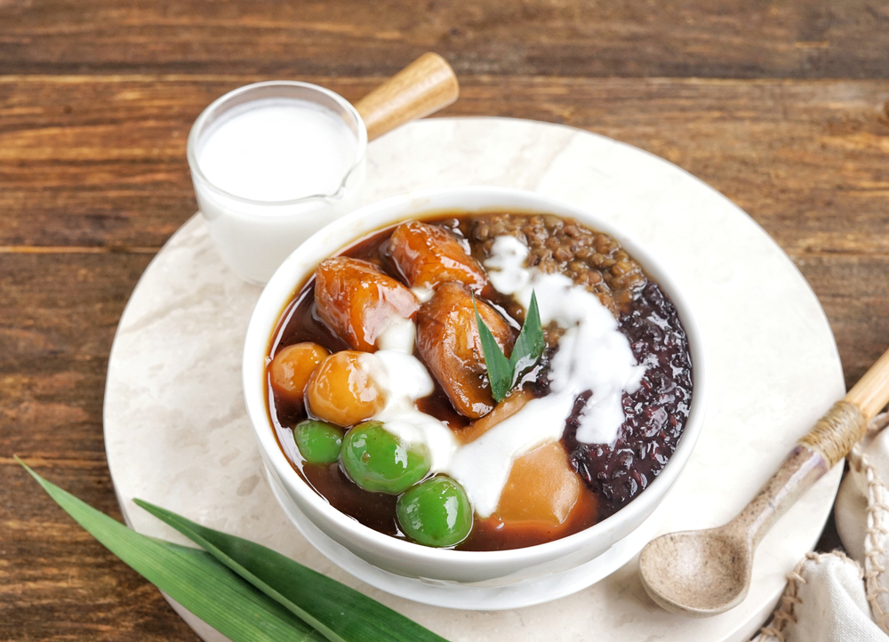 - Bubur dengan Toping: Bubur Kampiuun sering kali disajikan dengan berbagai topping seperti kelapa parut, kacang hijau, atau pandan. Toping ini menambah cita rasa dan tekstur pada bubur.