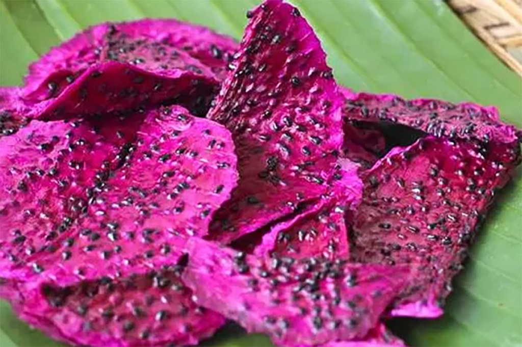 - Keripik Buah Naga dari Banyuwangi, berwarna mencolok dan kaya antioksidan.