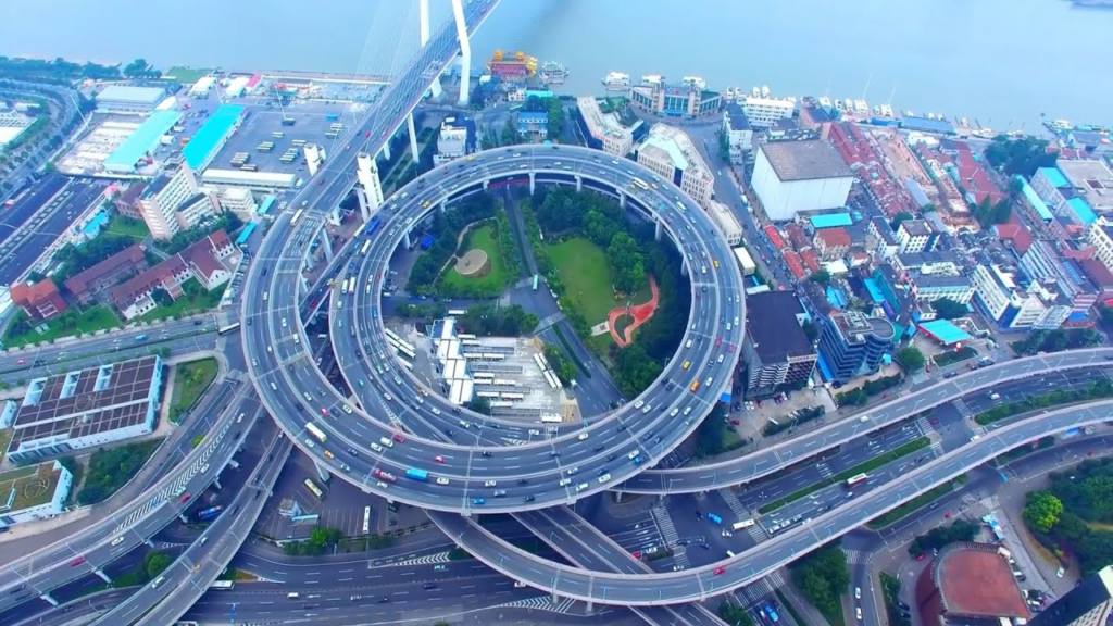 - Desain Spiral Ikonik: Peminat utama adalah struktur jalan akses spiral di sisi Puxi. Bentuknya yang melingkar dan berliku, yang dijuluki “Naga Berputar” (The Coiled Dragon), sangat unik secara visual. Ini adalah titik fokus yang sering diabadikan oleh fotografer, baik dari darat maupun dari udara, sebagai representasi kecerdasan arsitektur Tiongkok dalam mengatasi keterbatasan ruang.