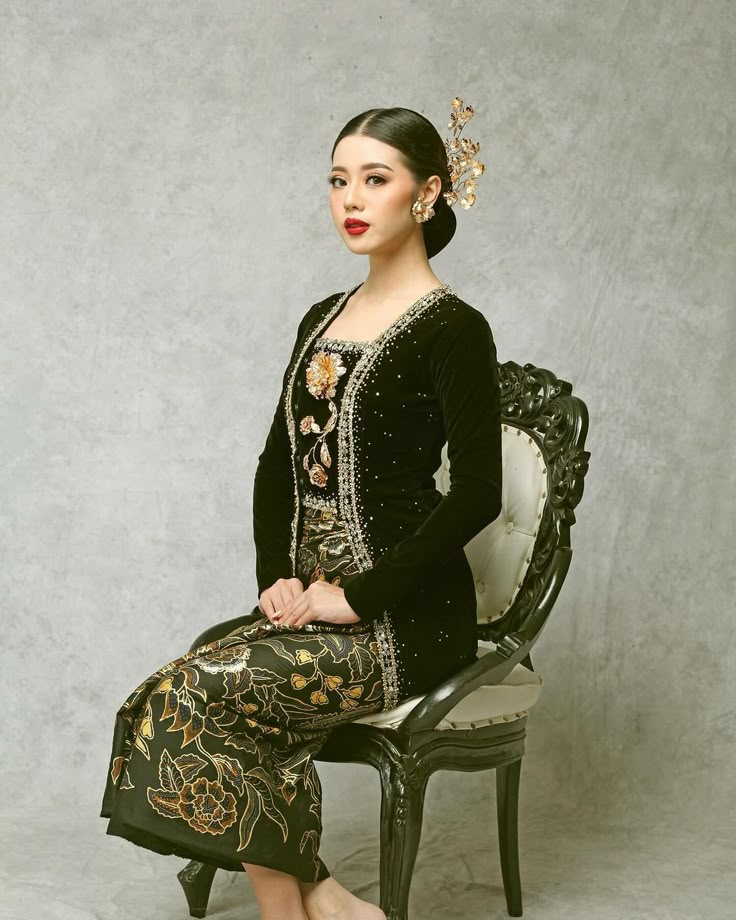 • Kebaya Solo (Surakarta): Kebaya ini memiliki desain yang anggun dan elegan, biasanya menggunakan bahan brokat atau satin. Ciri khas kebaya Solo adalah korset atau sabuk yang diikatkan di pinggang, memberikan siluet yang ramping.