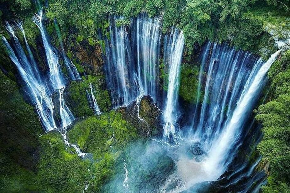 • Aliran Air Bertingkat yang Unik: Air Terjun Tumpak Sewu memiliki aliran air yang bertingkat-tingkat, seperti tangga raksasa yang mengalir dari ketinggian 120 meter. Pemandangan ini sangat indah dan menawan.