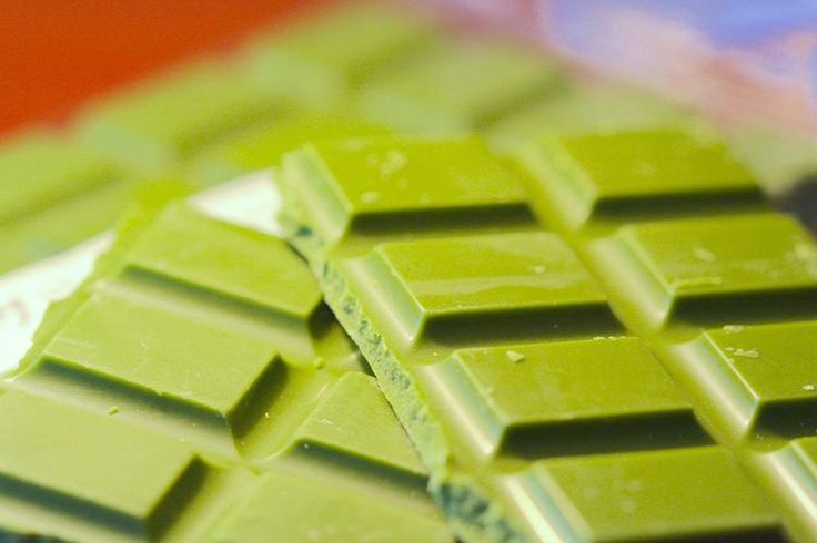 - Cokelat putih yang dicampur bubuk matcha—sering ditemukan dalam bentuk praline atau batangan kecil.