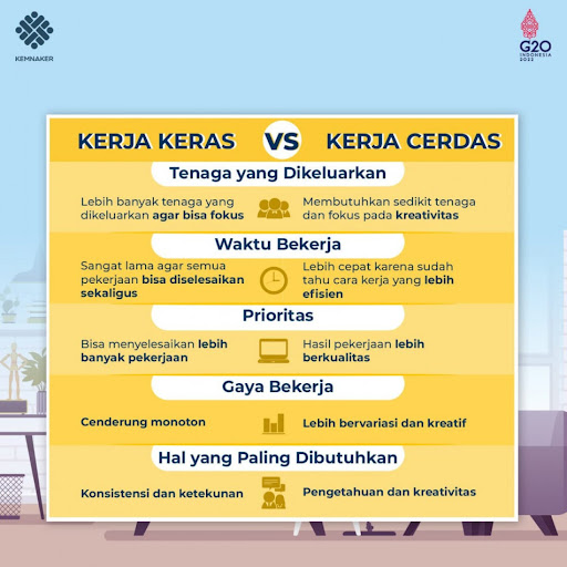 Jika kerja keras berfokus pada seberapa banyak upaya (input) yang dikeluarkan, maka kerja cerdas berfokus pada seberapa besar hasil (output) yang didapatkan dari upaya seminimal mungkin. Kerja cerdas adalah tentang optimalisasi, efisiensi, dan pemecahan masalah secara strategis.