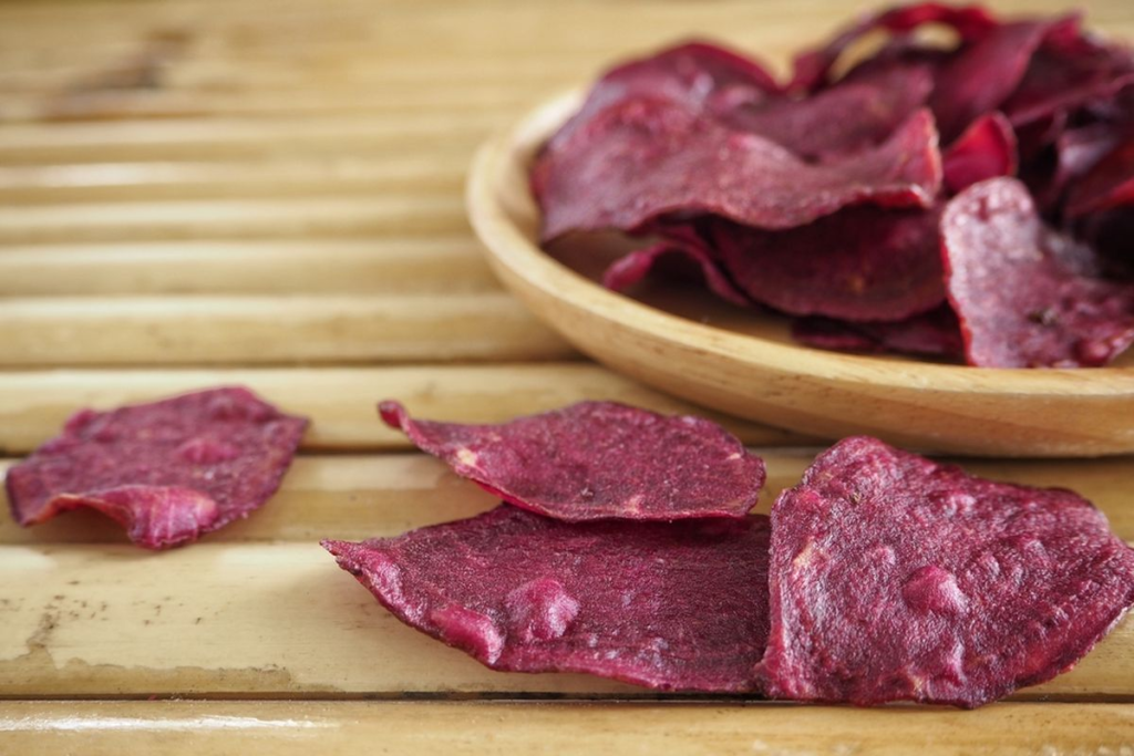 Jika Anda menginginkan camilan yang renyah, keripik ubi ungu adalah pilihan yang tepat. Proses pembuatan keripik ini sangat mudah; Anda cukup mengiris tipis-tipis ubi ungu yang sudah dikupas, lalu menggorengnya hingga renyah. Agar lebih lezat, Anda bisa menambahkan bumbu seperti garam, cabai bubuk, atau gula sesuai selera. Keripik ubi ungu ini cocok dijadikan teman saat menonton film atau sebagai camilan sore. Selain rasanya yang gurih, keripik ini juga lebih sehat dibandingkan dengan keripik kentang karena ubi ungu mengandung banyak serat, vitamin, dan antioksidan yang bermanfaat bagi kesehatan.