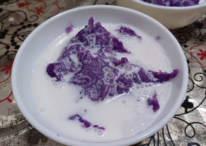 Bubur adalah makanan yang lembut dan mudah dicerna, cocok untuk sarapan atau makanan ringan. Dengan menggunakan ubi ungu, Anda bisa membuat bubur yang berbeda dari biasanya. Caranya cukup dengan merebus ubi ungu hingga empuk, kemudian menghaluskannya. Campurkan ubi ungu yang sudah dihaluskan dengan santan, sedikit gula, dan garam. Anda bisa menambahkan kacang hijau atau kelapa parut untuk menambah cita rasa. Bubur ubi ungu ini kaya akan rasa manis alami dari ubi ungu, serta memiliki kandungan gizi yang baik untuk tubuh. Nikmati bubur ubi ungu ini sebagai sarapan sehat yang mengenyangkan.