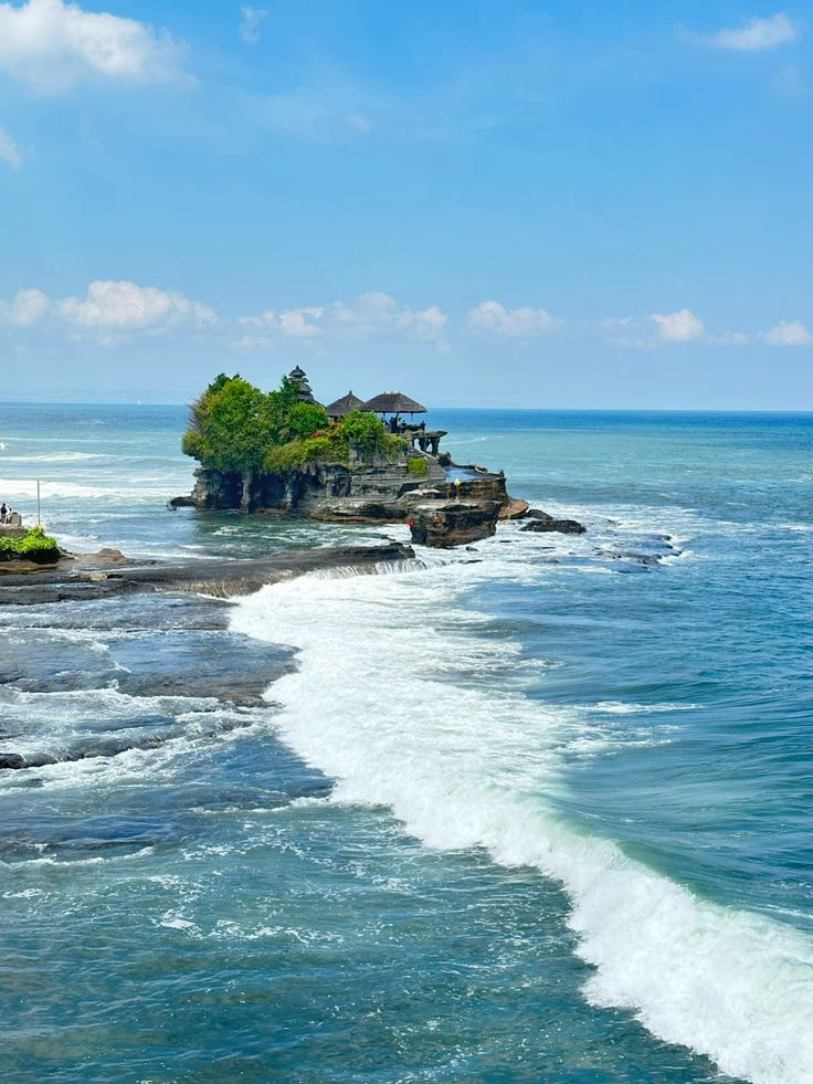 Pura Tanah Lot adalah pura laut yang terletak di atas batu karang besar, dikelilingi oleh laut. Tanah Lot terkenal dengan pemandangan yang sangat indah, terutama saat matahari terbenam, menjadikannya salah satu tempat paling instagrammable di Bali.
