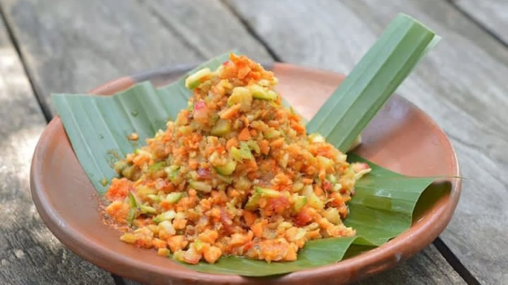 - Bumbu: gula merah, cabai, garam, kacang tanah, dan sedikit asam atau terasi.