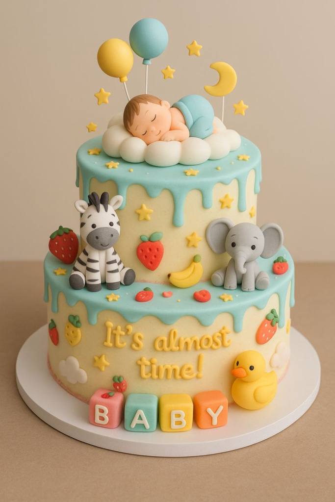 - Hiasan: Fondant berbentuk bayi tidur, tulisan βItβs a Boy!β / βItβs a Girl!β