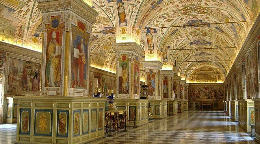 - Gallery of Maps (Galleria delle Carte Geografiche): Galeri sepanjang 120 meter ini merupakan salah satu koridor paling indah di dunia. Langit-langitnya dihiasi oleh dekorasi Renaisans yang kaya, sementara dindingnya memajang 40 panel peta topografi detail yang menggambarkan wilayah Italia dari tahun 1580 hingga 1583.