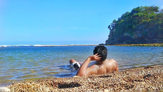 - Gunakan pakaian yang nyaman: Gunakan pakaian dan alas kaki yang nyaman karena medan menuju pantai cukup terjal.