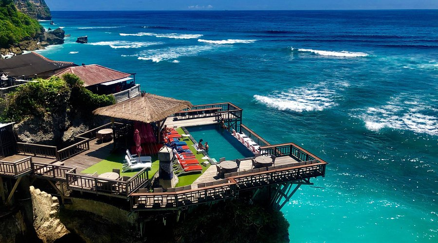 Pantai Suluban juga terkenal karena deretan bar dan kafe yang bertengger secara vertikal di sisi tebing. Nama “Blue Point Beach” sebenarnya berasal dari Blue Point Bay Villas & Spa, sebuah resor yang berada tepat di atas tebing pantai ini.