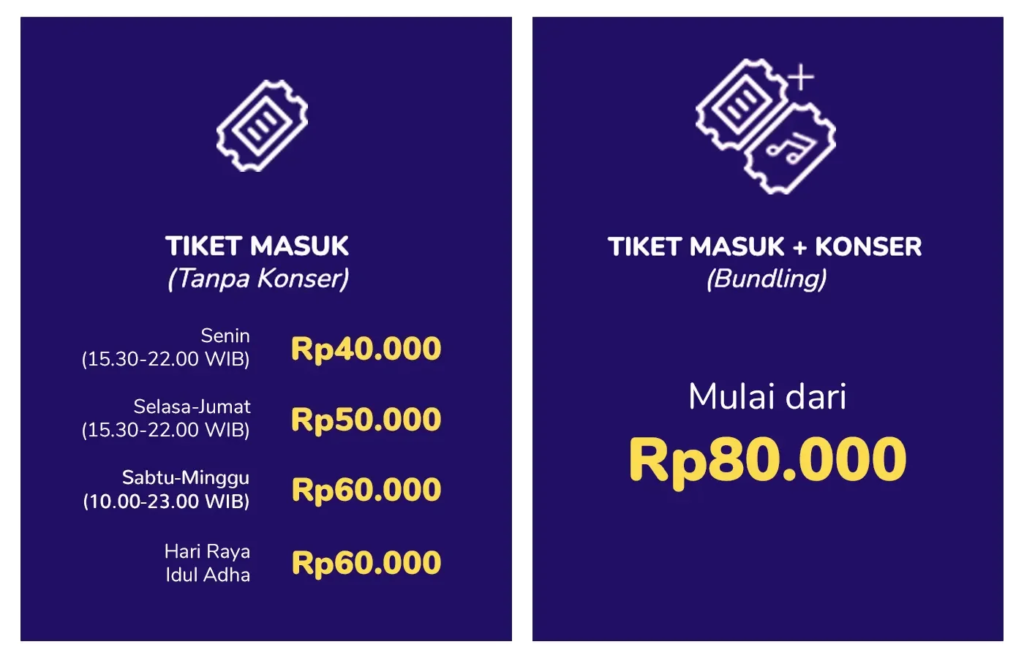 • Beli tiket masuk dan konser lebih awal untuk promo bundle.
