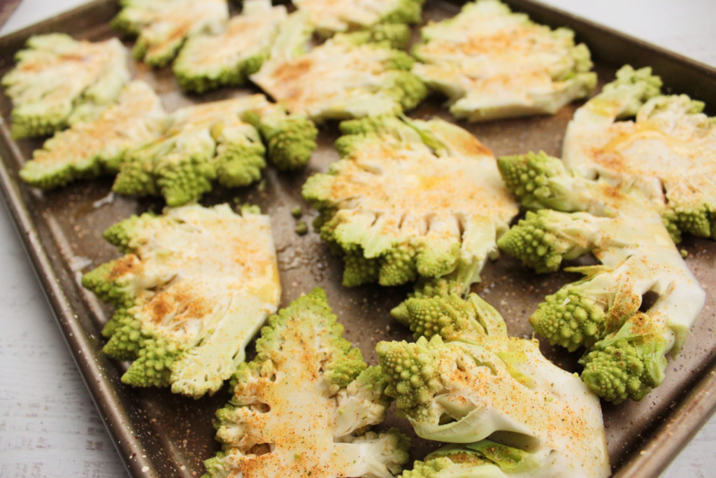 - Letakkan kuntum romanesco dalam mangkuk, tambahkan minyak zaitun, garam, merica, dan bumbu tambahan sesuai selera.