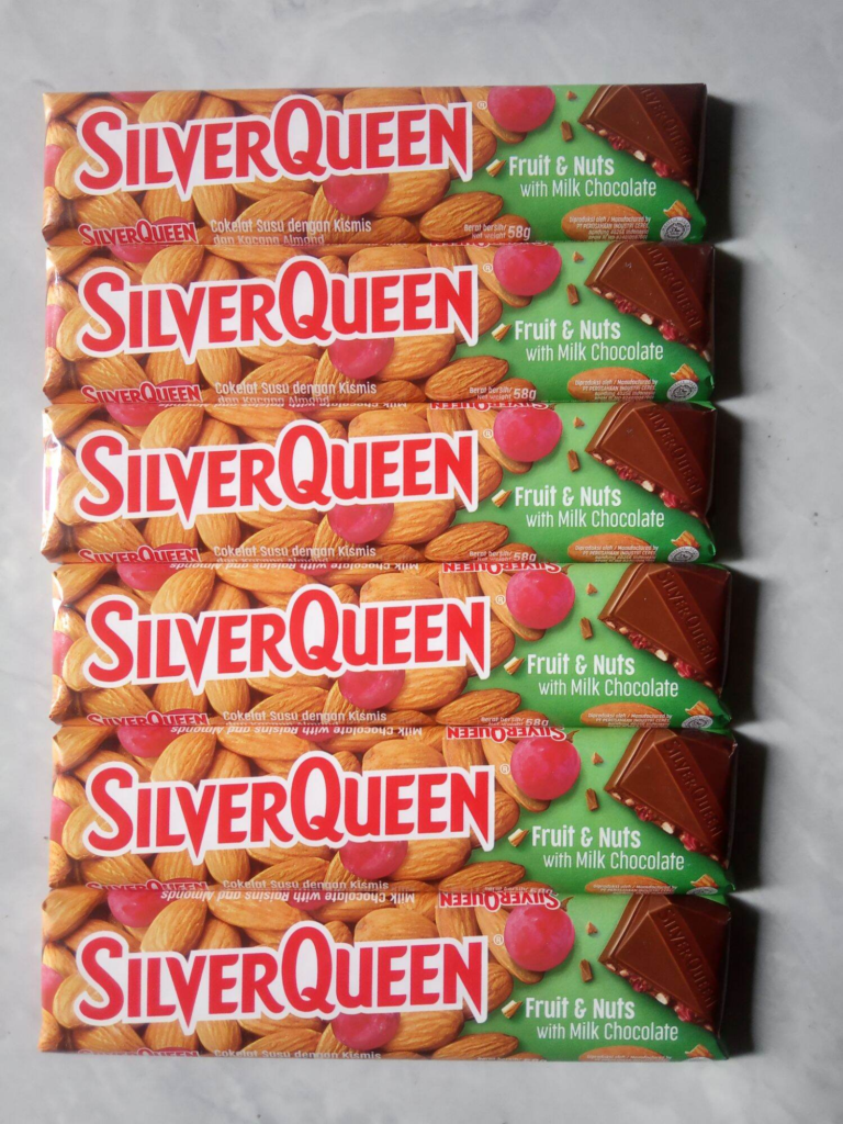 SilverQueen adalah merek coklat yang sangat terkenal di Indonesia. Dikenal dengan kualitasnya yang tinggi dan rasa yang lezat, SilverQueen menawarkan berbagai produk coklat dengan kombinasi kacang mete, kismis, dan bahan-bahan premium lainnya. Coklat SilverQueen pertama kali diperkenalkan pada tahun 1950-an dan sejak itu menjadi salah satu merek coklat paling ikonik di pasar Indonesia. Produk ini sering dianggap sebagai coklat yang bisa dinikmati di berbagai kesempatan, baik sebagai camilan harian maupun sebagai hadiah spesial.