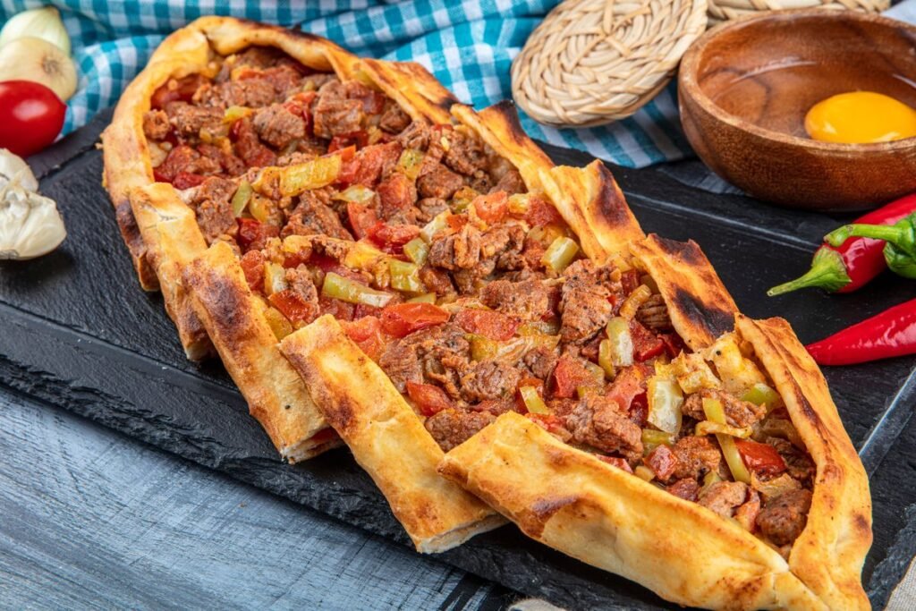 Pide adalah roti berbentuk perahu yang diisi dengan berbagai topping seperti daging, keju, atau sayuran. Sering disebut sebagai “pizza Turki,” pide memiliki variasi regional yang mencerminkan keragaman kuliner di seluruh Turki.